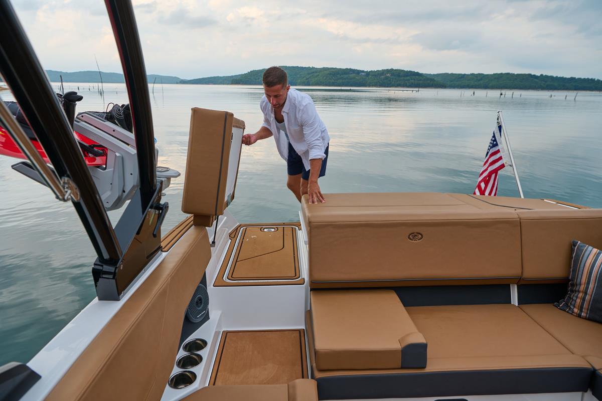 Aan de achterzijde zorgt het geïntegreerde full-beam zwemplatform – optioneel met de gepatenteerde Cobalt Swim-Step – voor ultieme toegankelijkheid en maakt het instappen, relaxen of spelen in het water eenvoudiger dan ooit.