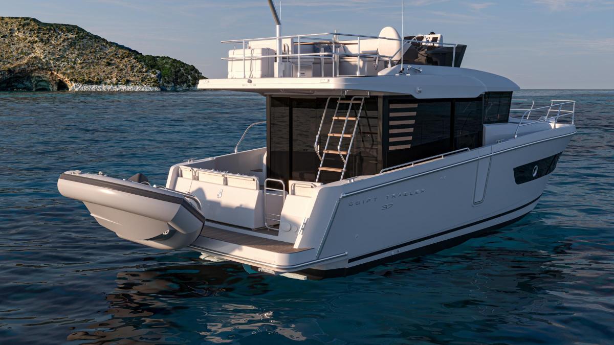Le nouveau Swift Trawler 37 Flybridge allie style, confort et liberté pour une élégance discrète sur l'eau.