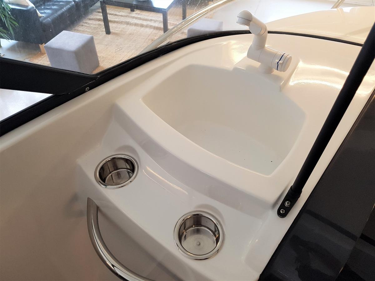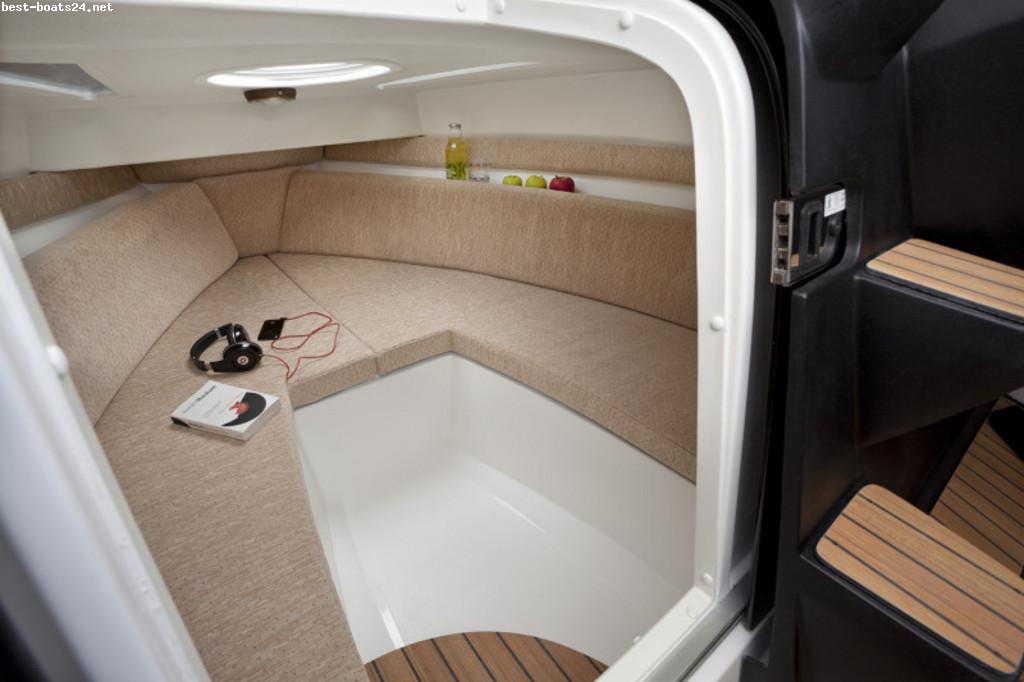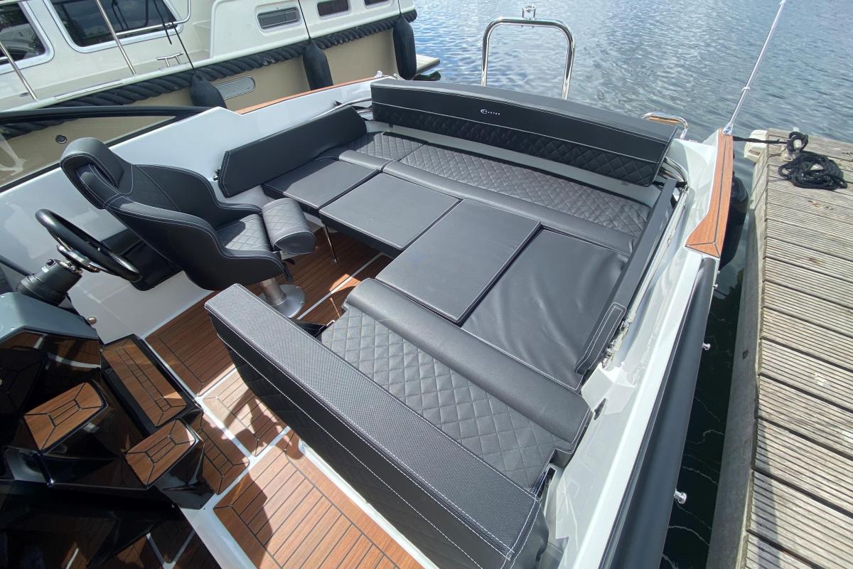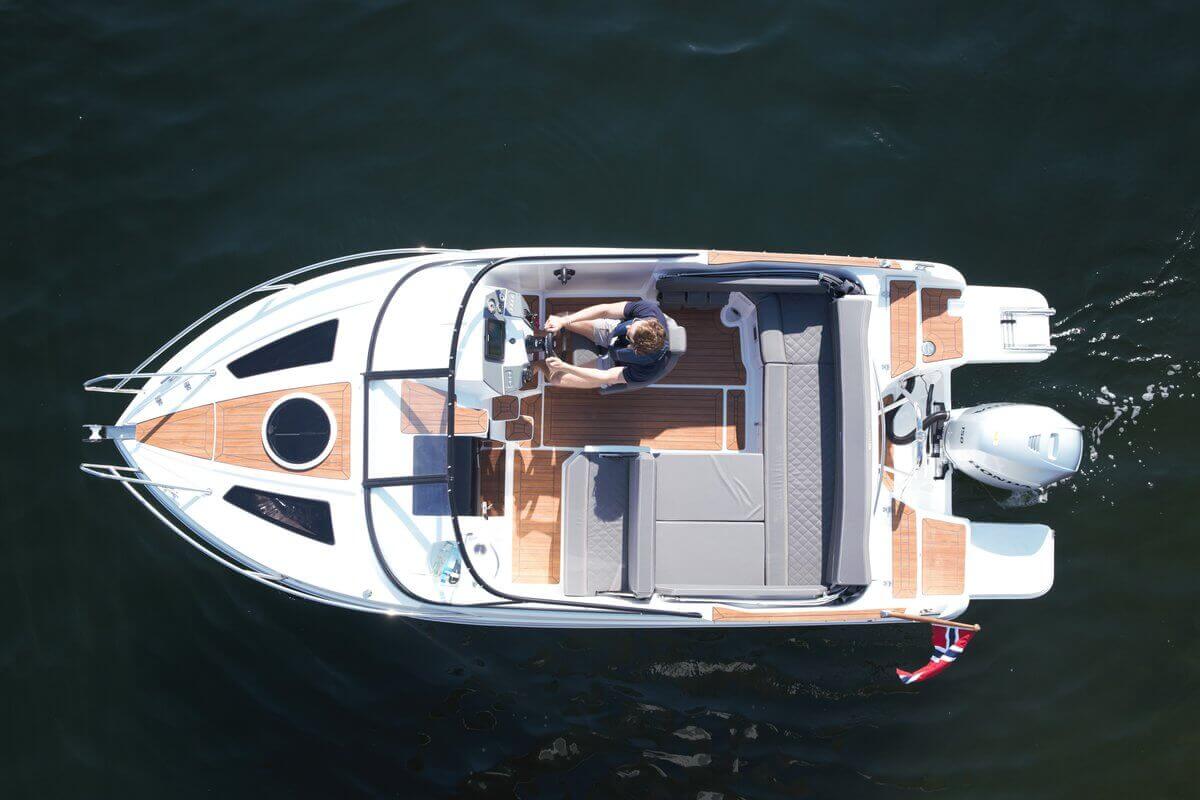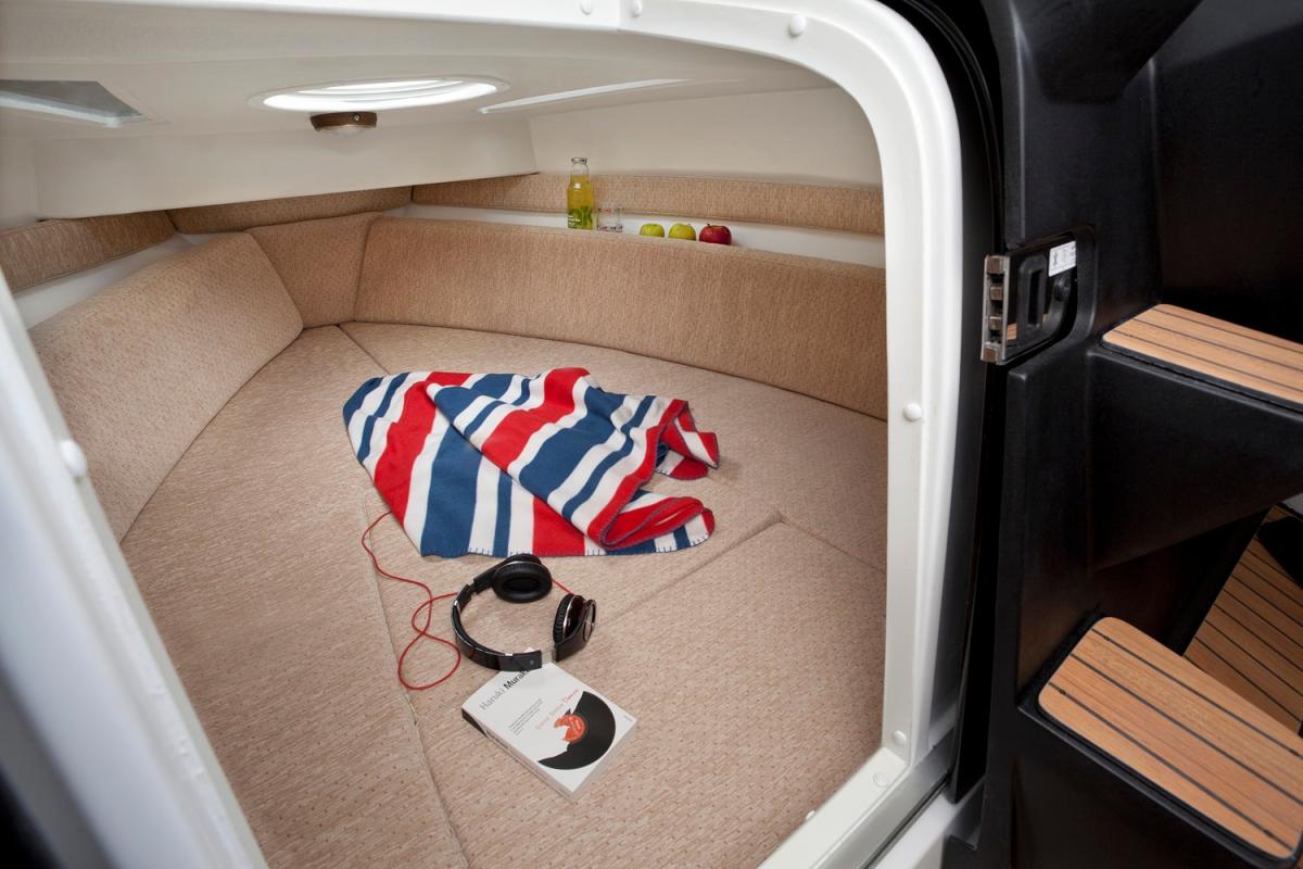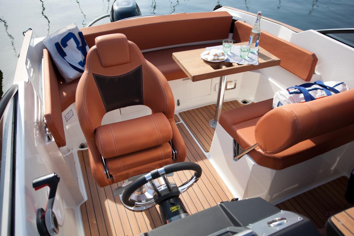 La forme moderne de la coque du 600 DC lui confère non seulement un look élégant, mais aussi une excellente stabilité à grande vitesse. Le cockpit ergonomique offre une liberté de mouvement maximale, tandis que la cabine offre suffisamment d'espace pour ranger vos affaires ou vous reposer à l'abri du soleil.