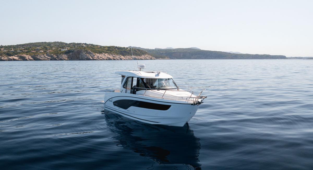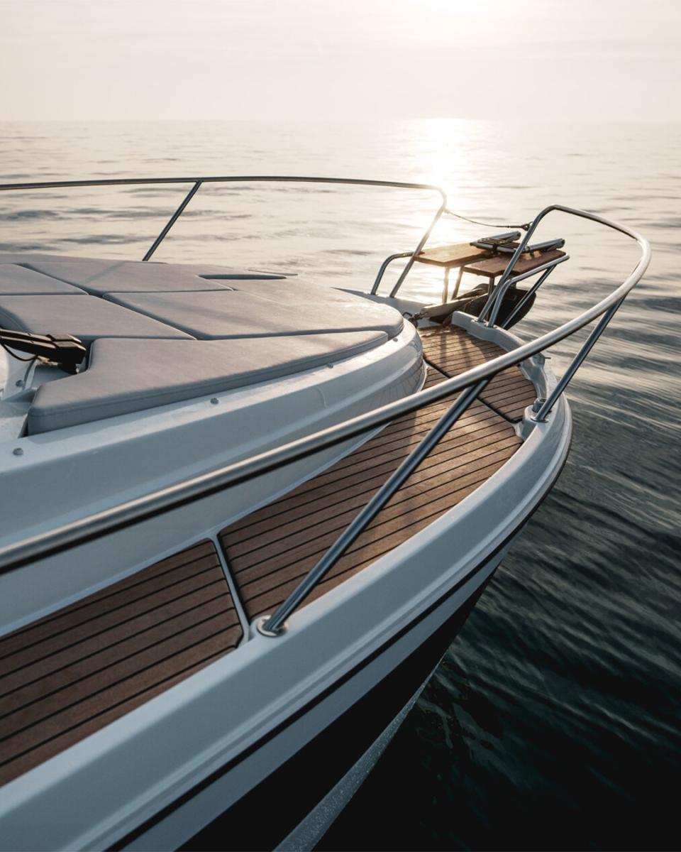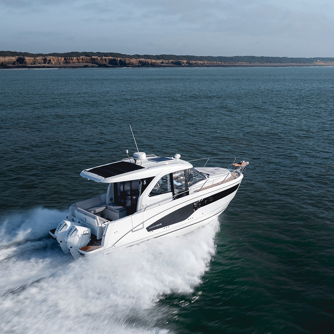 De Antares 9 is een gestroomlijnde moderne boot die opnieuw is ontworpen met innovaties en verbeteringen van grotere modellen. Deze nieuwe versie is gebouwd voor leuke weekenden op het water en biedt nog meer manieren om van de zee te genieten. Hij is gemakkelijker te verplaatsen en te hanteren, en nog beter in goed gezelschap, of u nu voor anker ligt of aan het cruisen bent.