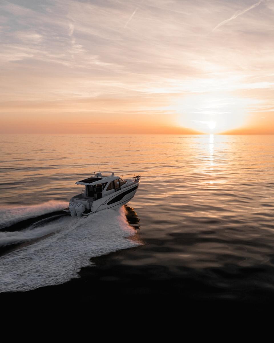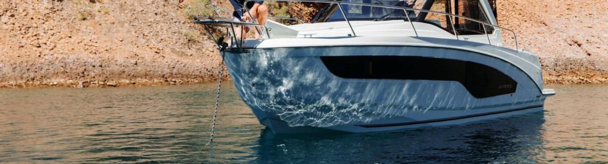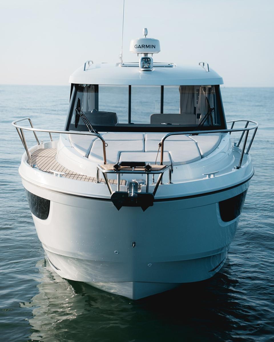 De Antares 9 is een gestroomlijnde moderne boot die opnieuw is ontworpen met innovaties en verbeteringen van grotere modellen. Deze nieuwe versie is gebouwd voor leuke weekenden op het water en biedt nog meer manieren om van de zee te genieten. Hij is gemakkelijker te verplaatsen en te hanteren, en nog beter in goed gezelschap, of u nu voor anker ligt of aan het cruisen bent.