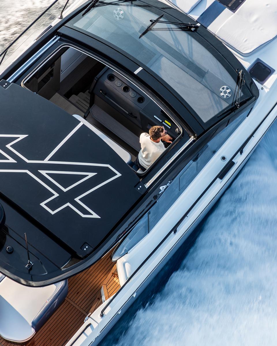 Aan dek biedt de GT40 een ruime cockpit met buitenkeuken, een afsluitbare hardtop en een voordek met zonnebed en zitbank, perfect voor ontspanning of het klaarmaken van watersportactiviteiten. Onder dek vinden gezinnen een open kajuit op gesplist met vier slaapplaatsen, inclusief een masterkajuit en een centrale kajuit die eenvoudig om te vormen is tot extra bed. De badkamer met aparte douche maakt meerdaagse trips comfortabel en praktisch.