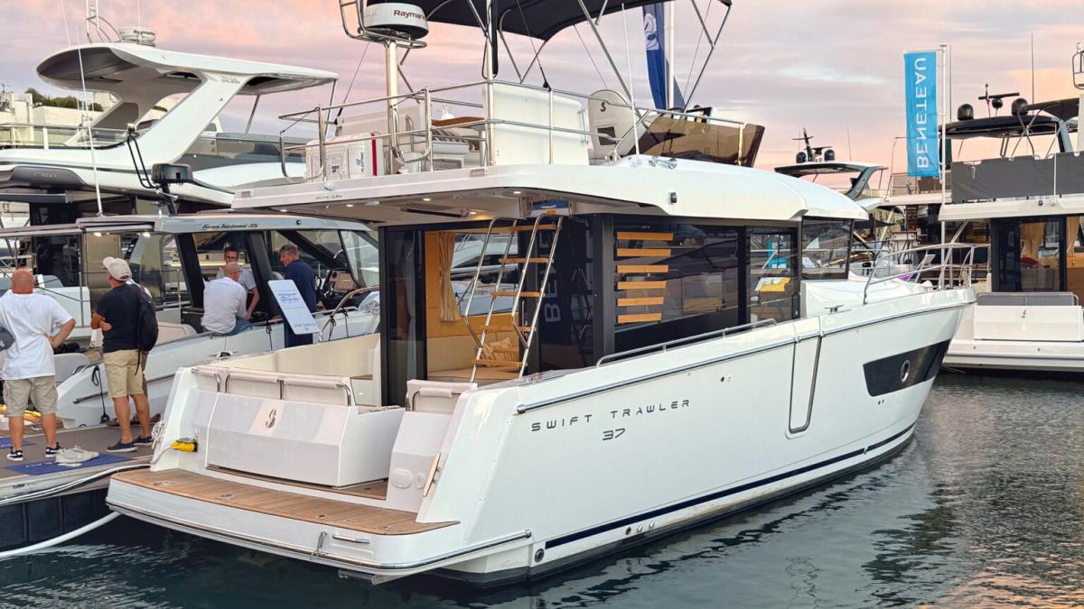 De opvallende nieuwe Swift Trawler 37 Flybridge combineert stijl, comfort en vrijheid voor een ingetogen elegantie op het water.