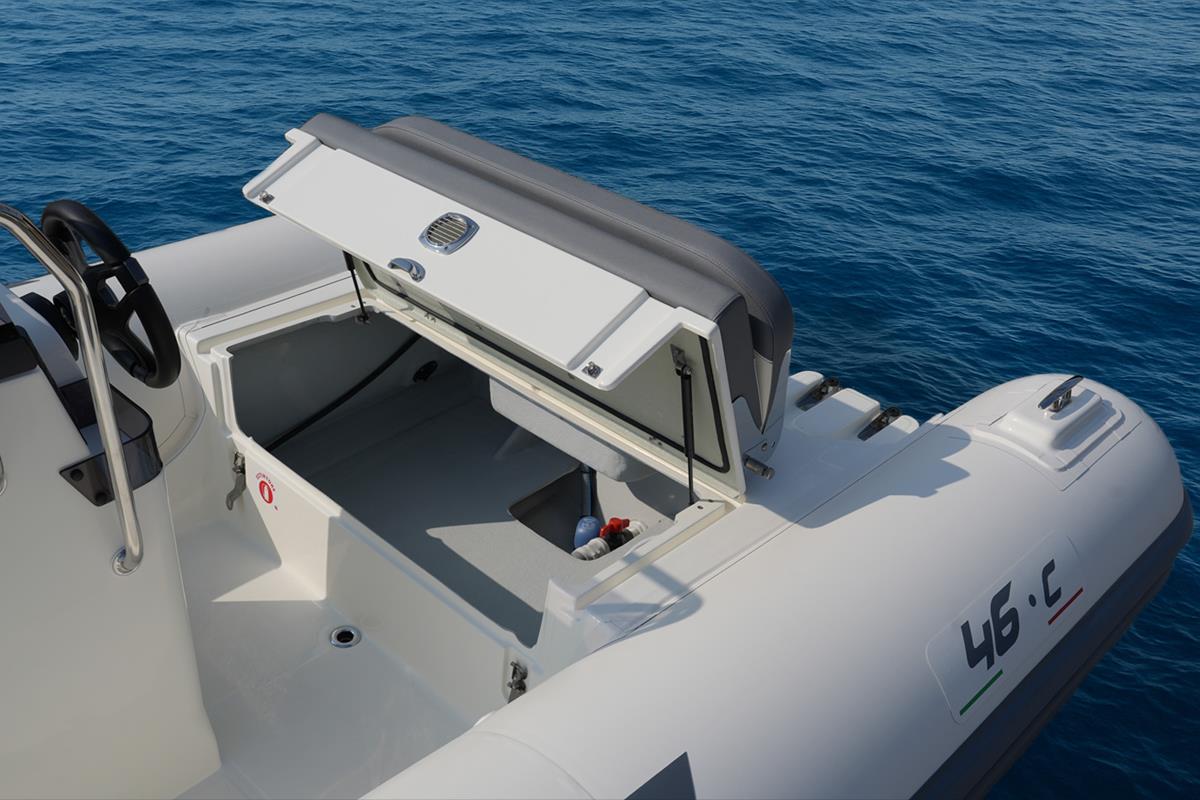 Le BSC 46 offre trois compartiments à l'avant, un sous la console et un autre à l'arrière sous le siège du pilote.