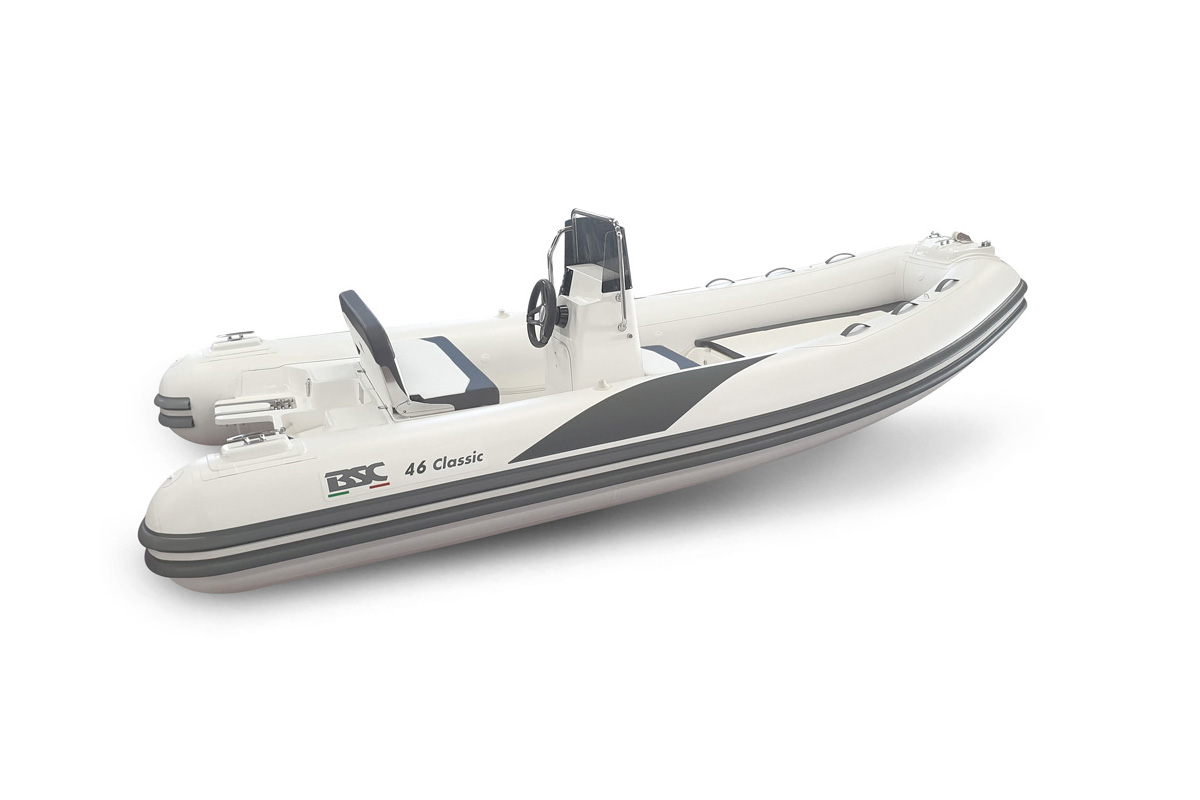 Premier modèle de la gamme BSC, le 46 est un bateau semi-rigide aux dimensions optimisées mais contenues.