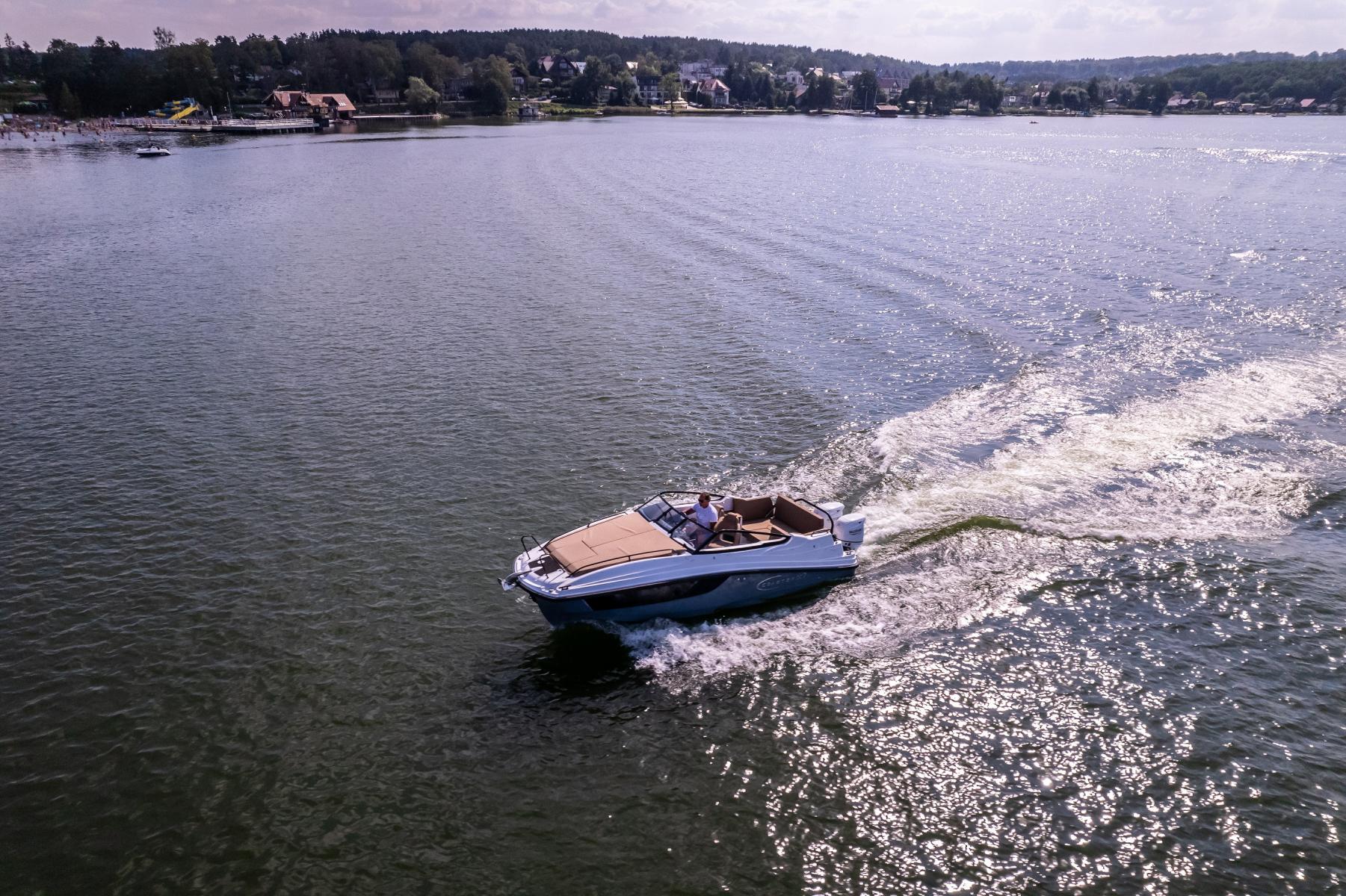 De boot presteert uitstekend op het water wat resulteert in een laag brandstofverbruik. De stuurpositie boven een gemiddeld niveau beschermt de passagiers tegen wind en opspattend water.