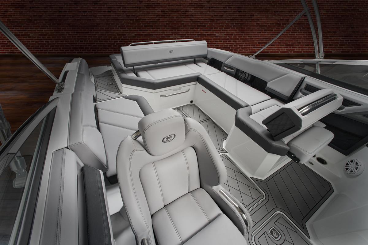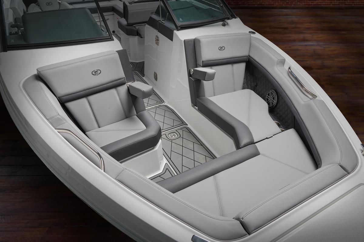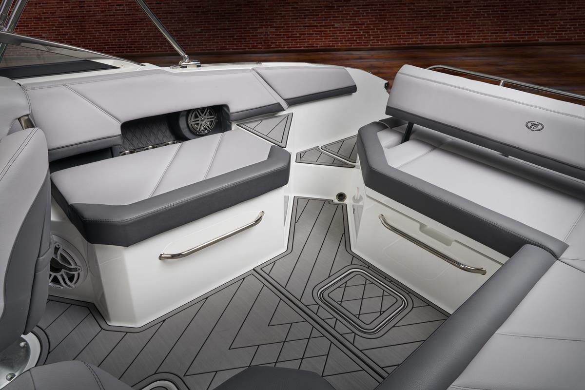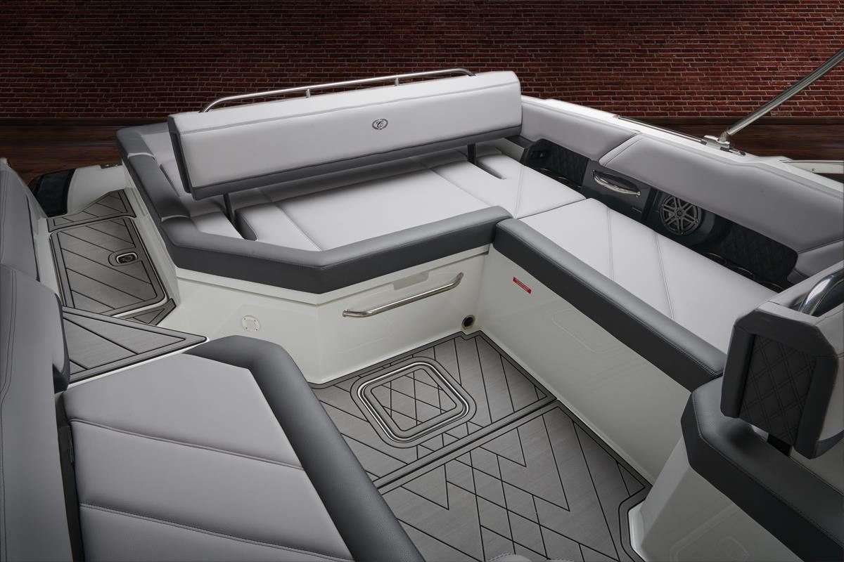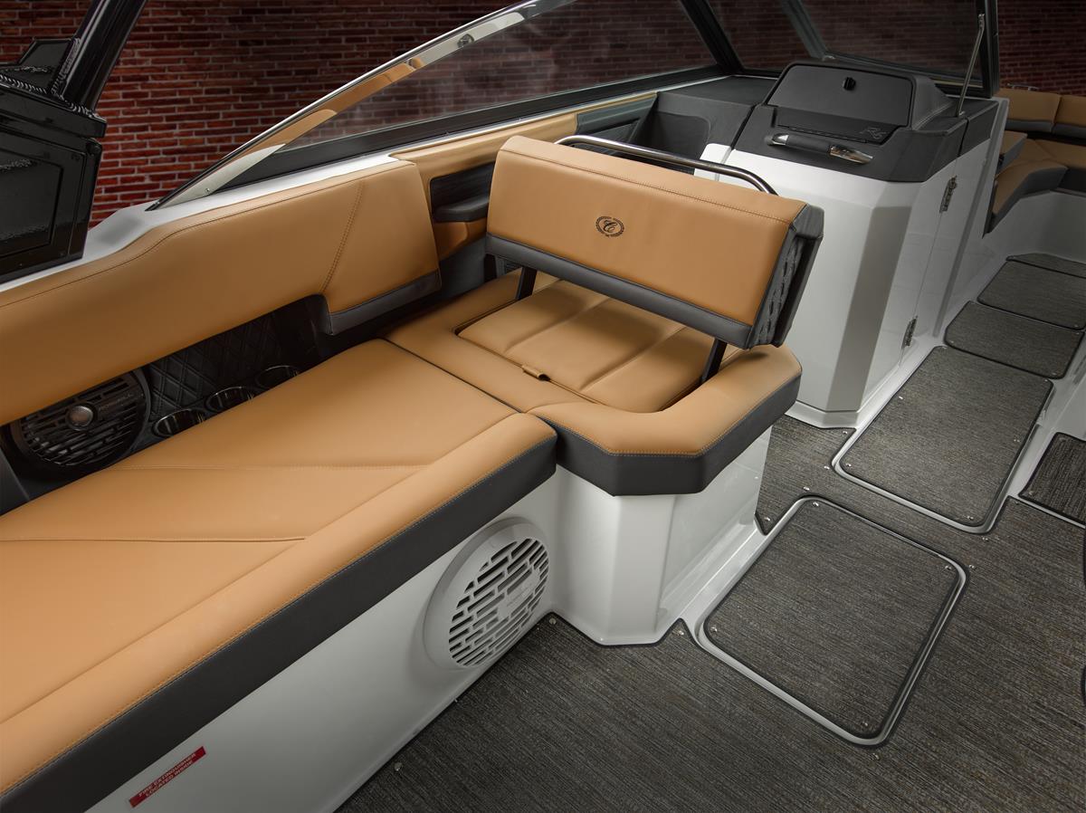 Aan boord biedt de R6 een ruim en ergonomisch interieur met comfortabele zitplaatsen in yacht-stijl. De wrap-around zithoek creëert een gezellige setting voor familie en vrienden, terwijl slimme opbergruimtes voldoende plaats bieden voor watersportuitrusting, fenders en persoonlijke spullen. Optioneel is de Cobalt R6 uitgerust met een afgesloten toiletruimte, waardoor langere dagtochten nog comfortabeler worden. De hoogwaardige bekleding en materialen zijn speciaal geselecteerd om koel te blijven in de zon en bestand te zijn tegen intensief gebruik.