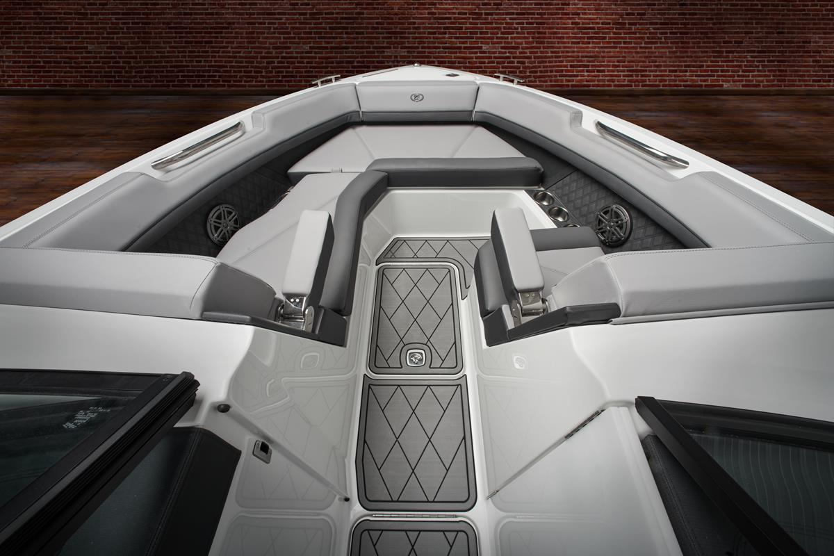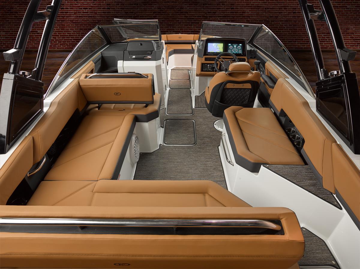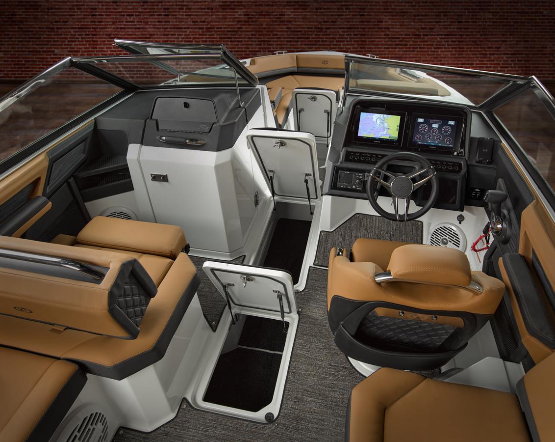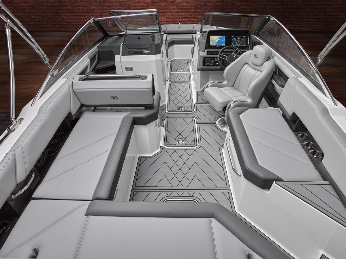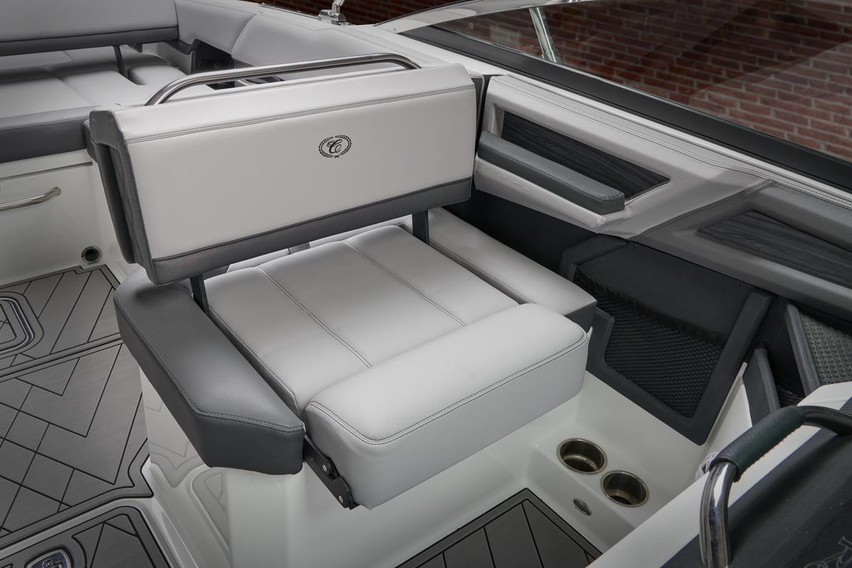 Aan boord biedt de R6 een ruim en ergonomisch interieur met comfortabele zitplaatsen in yacht-stijl. De wrap-around zithoek creëert een gezellige setting voor familie en vrienden, terwijl slimme opbergruimtes voldoende plaats bieden voor watersportuitrusting, fenders en persoonlijke spullen. Optioneel is de Cobalt R6 uitgerust met een afgesloten toiletruimte, waardoor langere dagtochten nog comfortabeler worden. De hoogwaardige bekleding en materialen zijn speciaal geselecteerd om koel te blijven in de zon en bestand te zijn tegen intensief gebruik.