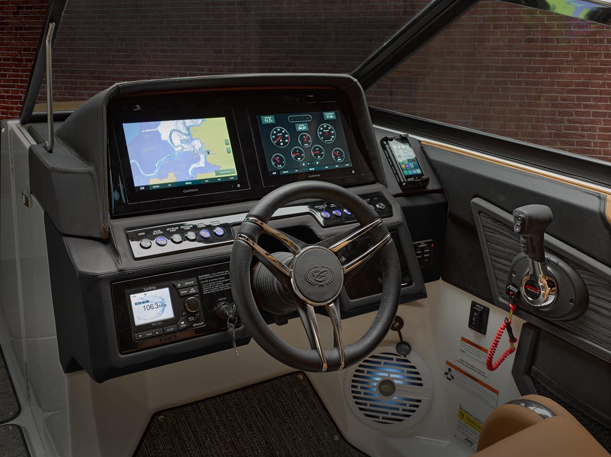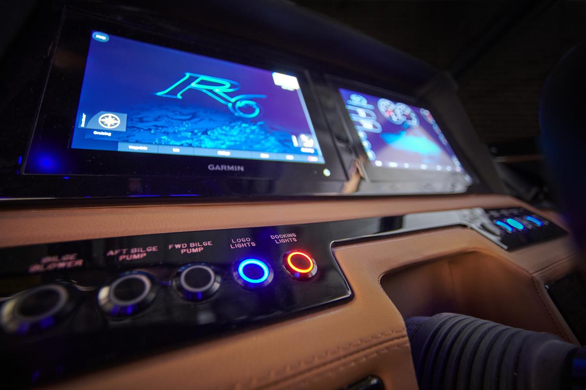 De stuurpositie is voorzien van een moderne Garmin Glass Cockpit, waarin navigatie, motorinformatie en boordfuncties overzichtelijk samenkomen. Deze geavanceerde technologie zorgt voor maximale controle, veiligheid en gebruiksgemak tijdens elke vaartocht. De intuïtieve bediening maakt de R6 geschikt voor zowel ervaren schippers als beginnende bootbezitters.