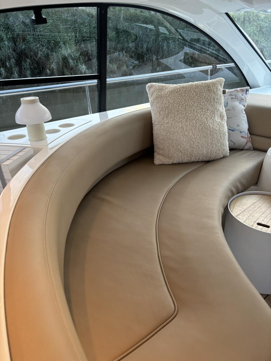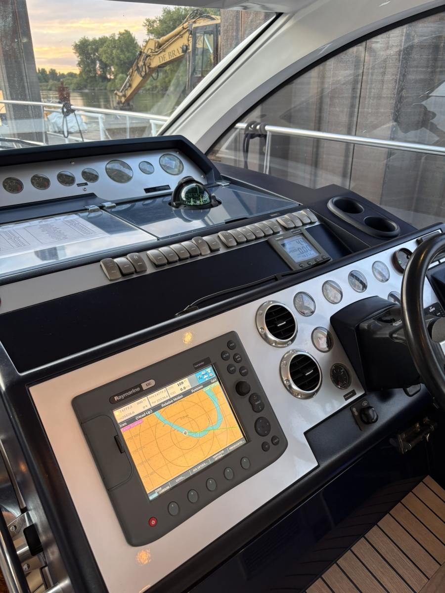 Fairline 47 GT (2007) Stijlvolle en sportieve cruiser met uitstekende vaareigenschappen. Uitgerust met twee Volvo Penta D9 motoren van elk 435 pk, biedt deze Fairline kracht, comfort en betrouwbaarheid in één luxe jacht. Perfect voor zowel ontspannen tochten als snelle overtochten.