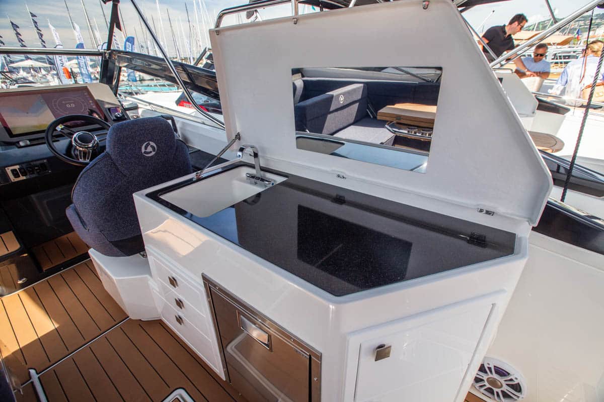 De diepe V-romp garandeert een stabiele en comfortabele navigatie, ideaal voor ruige zeeomstandigheden. De hoogwaardige materialen en geavanceerde constructietechnieken die bij de productie worden gebruikt, zorgen voor uitzonderlijke duurzaamheid en sterkte.