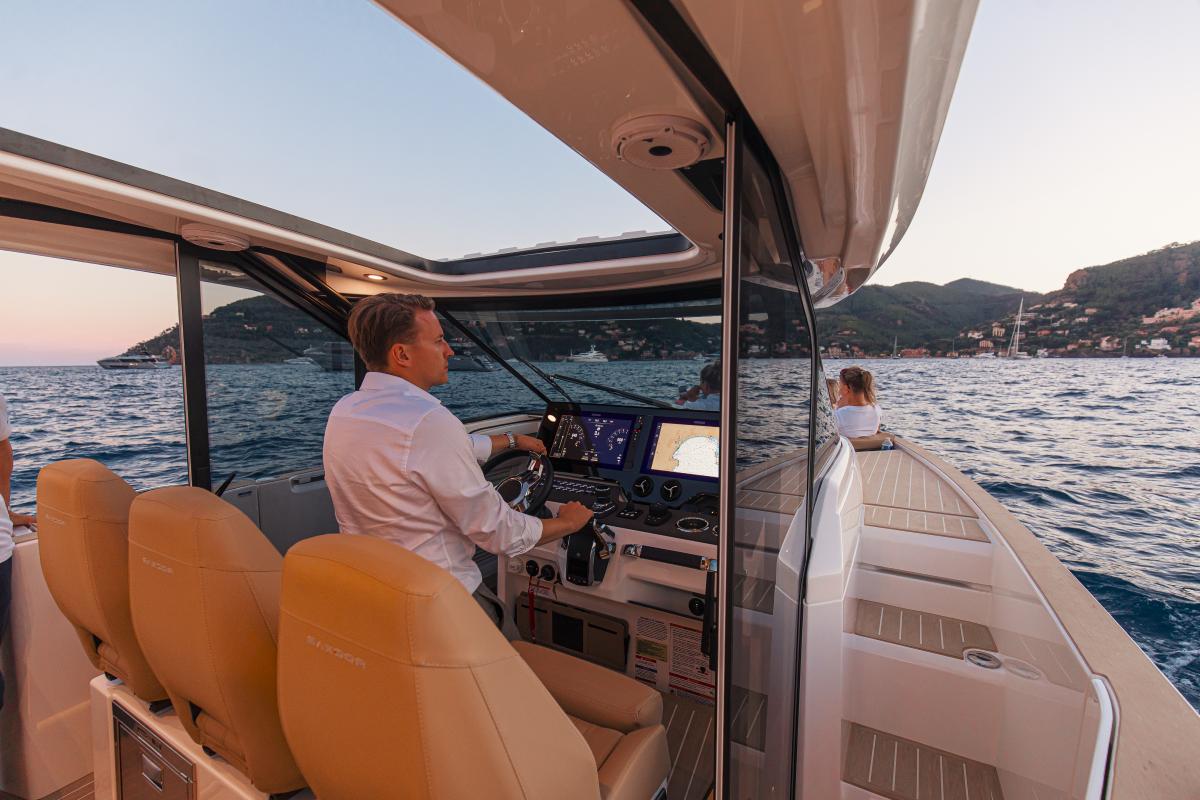 Saxdor GTS 400 te koop bij Belgian Boat Service – Deze sportieve en luxe Saxdor GTS 400 met twin Mercury V10 425 pk buitenboordmotoren staat nu in de showroom bij Belgian Boat Service in België. De Saxdor 400 GTS combineert hoge prestaties, modern design en comfort, en is ideaal voor zowel dagtochten als langere trips. Bezoek de showroom en ontdek deze krachtige en innovatieve motorboot van dichtbij.
