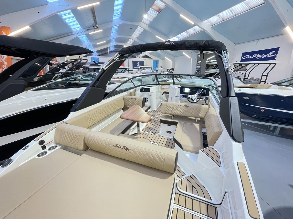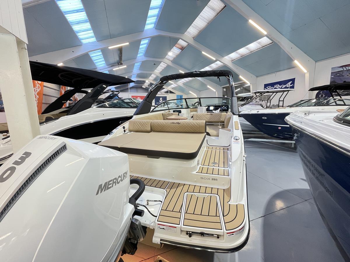 Stel uw vraag Searay Searay 250 SDX outboard vanaf €177 991 Specificaties Type Voorraad- en demoboten Beschikbaarheid Op voorraad Model 2026 Bouwjaar 2026 Kleur ZwartWit/Dune Lengte 8m49 Romplengte 7m69 Breedte 2m59 Motor Motor(en) 300 Mercury Coolwhite Uitrusting ESSENTIALS PACK COMFORT PACK ENTERTAINMENT PACK ANCHORING PACK PACK (7026) Inclusief : • Stainless steel anchor • Windlass with rope and chain LIGHTING PACK PACK (7108) Inclusief : • Docking lights • Accent & underwater lighting (SDX is ARGB) WATER SYSTEM PACK PACK (7109) Inclusief : • Bow Washdown • Pressure water system • Transom sprayer ZWARTE ELEKTRISCHE WATERSPORT TOREN MET BIMINI (Elektrisch) TOREN ACCENT PANELEN Cockpit kleur - Dune Gelijmde SeaDek Cockpit Boegschroef Koelbox koelkast in cockpit Toilet - Elektrisch met vuilwatertank Macerator met zeekraan vergrendeling DUBBEL DIGITAAL DASHBOARD MET SMARTCRAFT CONNECT (9") 177991 € Stel uw vraag