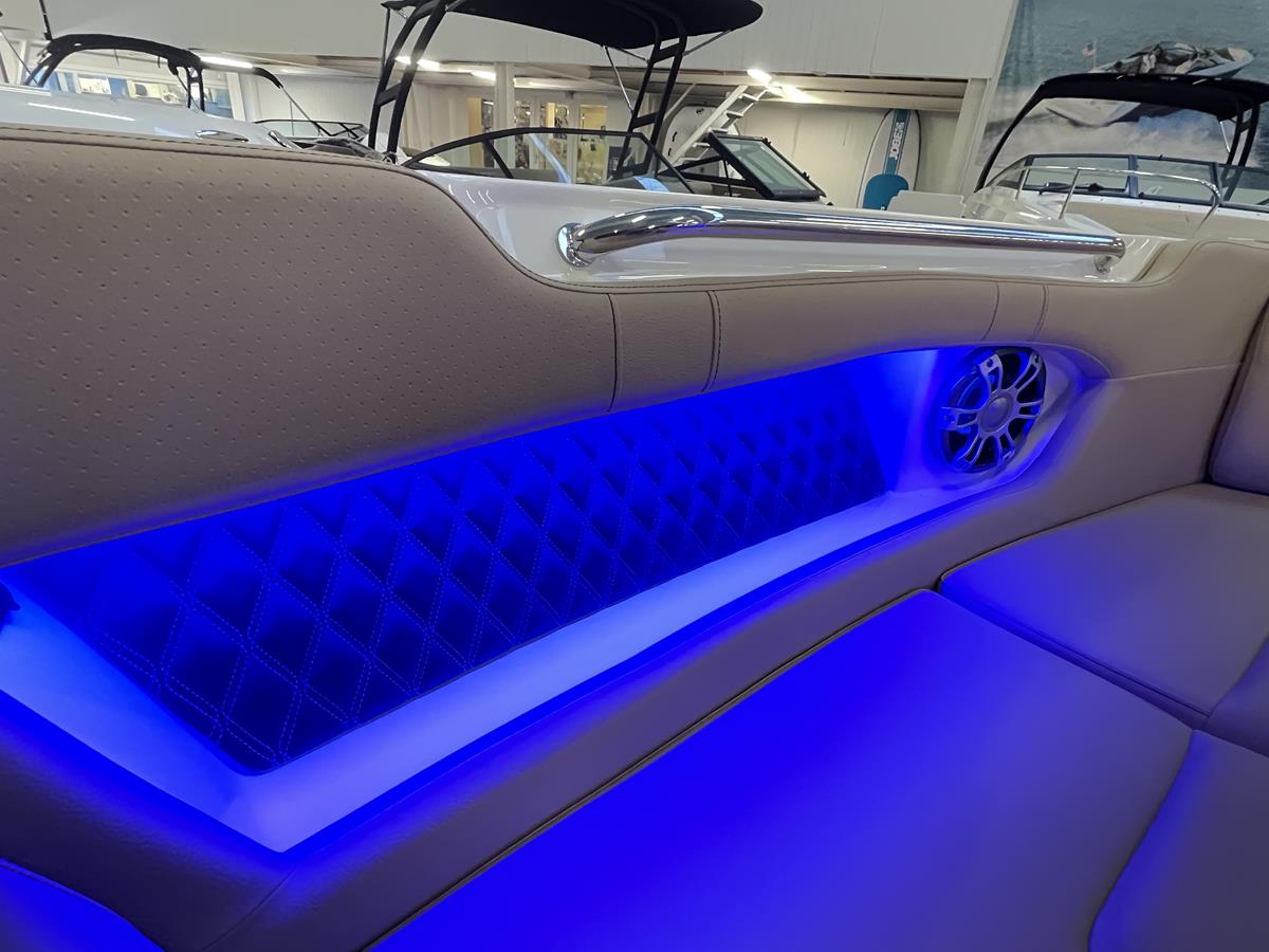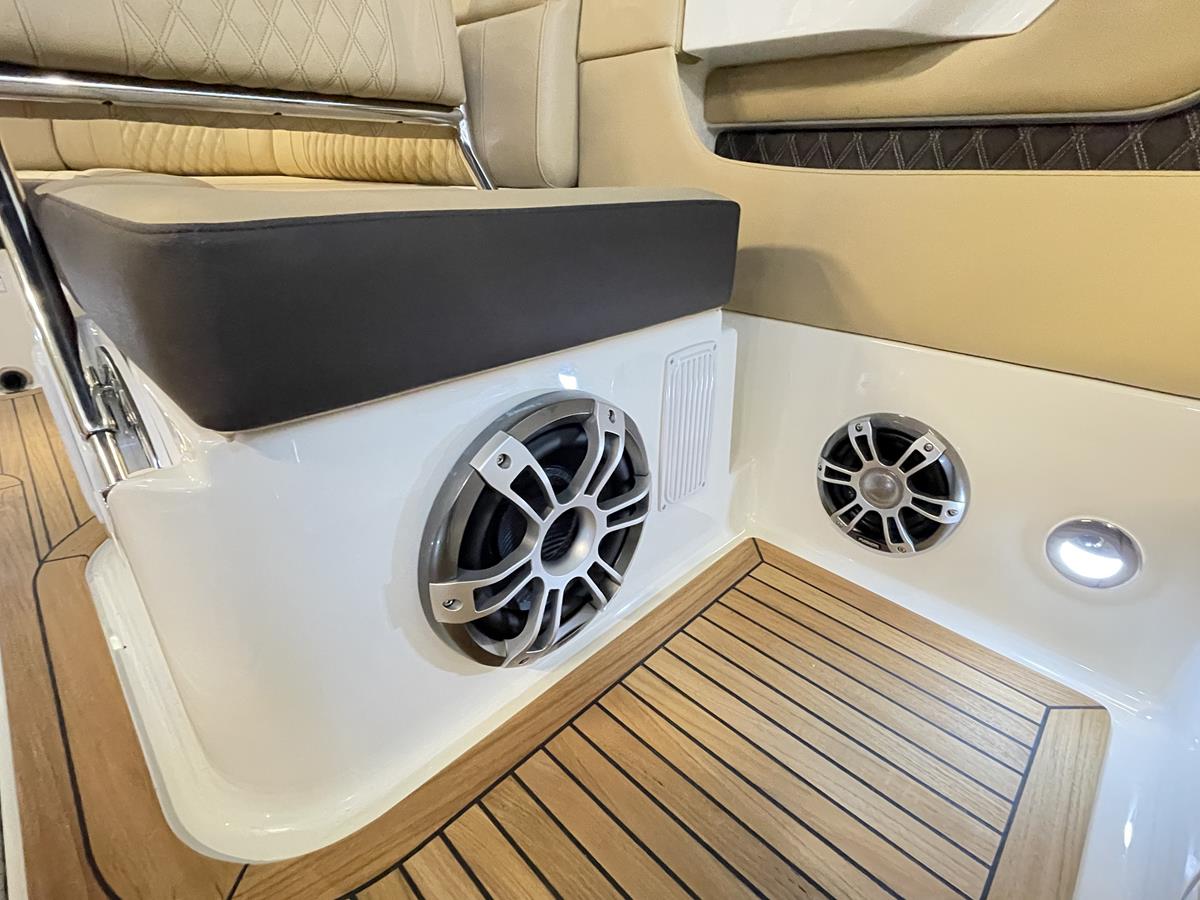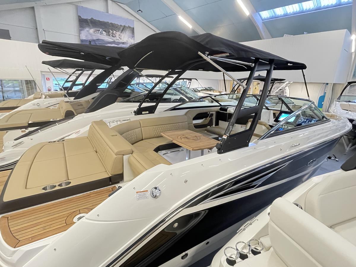 Zeer complete Sea Ray SLX 250 in uitmuntende staat, met slechts 100 vaaruren. Uitgevoerd met een volledig zwarte romp en voorzien van alle luxe opties.
