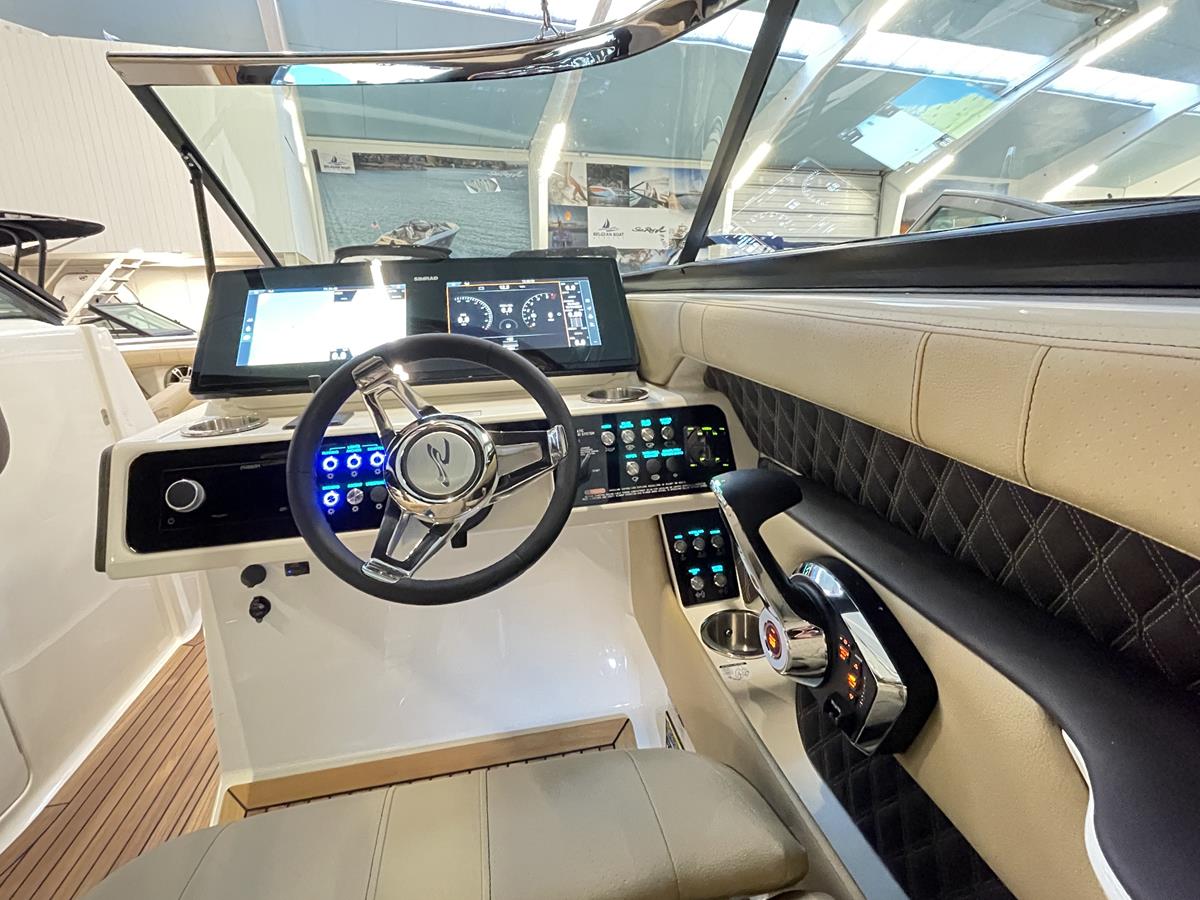 Deze boot beschikt over grote Simrad schermen, boegschroef, elektrisch anker, volledig teak cockpit en zwemplateau inclusief onderwater platform. De originele Sea Ray waketower met bimini top maakt het geheel compleet.