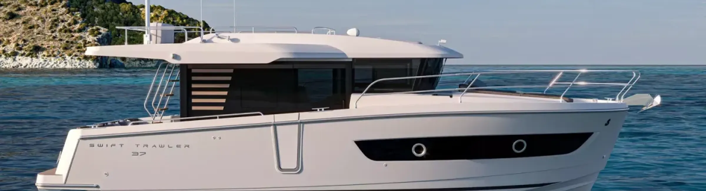 De nieuwe Swift Trawler 37 Sedan is een gedurfde stap voorwaarts voor BENETEAU's populaire lijn van passagemakers. Na 140 jaar blijven we innoveren en hebben we het volledige potentieel van het bovendek van deze familiecruiser benut.